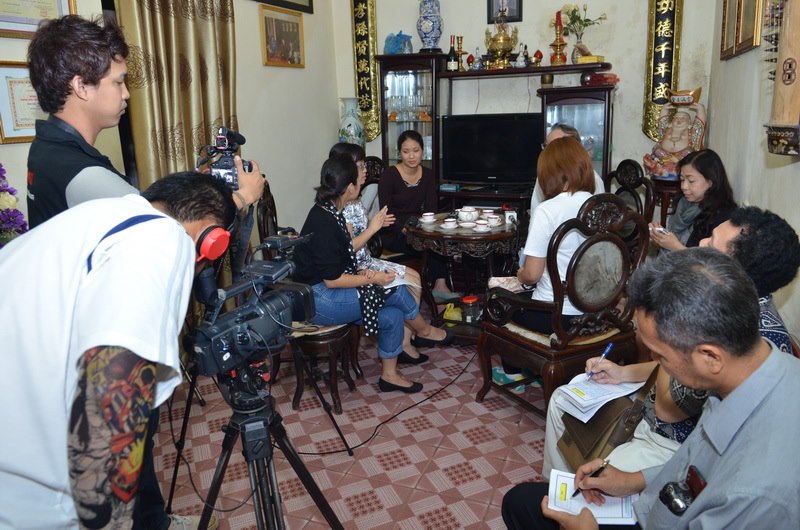 Wartawan Thailand mewawancarai para anggota Kelab Lagu Rakyat Ca Tru Hang Kenh kota Hai Phong