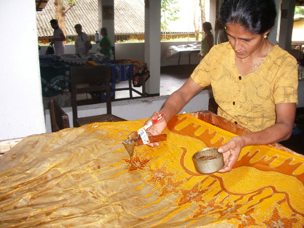 Helai-halai kain Batik digambarkan dengan motif-motif halus oleh para tukang Batik