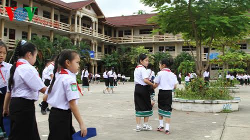 Sekarang ini, bagi mata pelajaran bahasa Vietnam di sekolah Nguyen Du, para pelajar belajar mata pelajaran ini sebagai satu bahasa asing dengan 4 sampai 6 jam belajar sepekan sesuai dengan setiap tingkat khas. Di samping itu, ada tiga klas yang melakukan eksperimen program dwi bahasa, di antaranya, para pelajar akan dapat belajar bahasa Vietnam dan mata pelajaran lainnya dengan bahasa Vietnam. Ibu guru Sup-po-soong adalah orang Laos yang telah pernah hidup dan bekerja di Vietnam selama bertahun-tahun. Dengan bekal bahasa Vietnam yang baik dan pengalaman dalam mengajar, sekarang ini, dia sedang mengajar mata pelajaran matematika untuk 3 klas dwi bahasa di sekolah ini. Dia mengatakan: “Saya adalah guru orang Laos, mencintai orang Vietnam dan bahasa Vietnam. Saya selalu bertanya kepada pelajar apakah mereka mengerti ketika saya berbahasa Vietnam. Saya harus memiliki akar bahasa, saban hari, saya harus mencari kata-kata yang bisa dimengerti oleh pelajar. Mata pelajaran matematika ini sangat sulit. Saya harus menterjemahkan buku pengajaran unutk orang Vietnam ke bahasa Laos lalu mengajarkannya kepada para pelajar”.