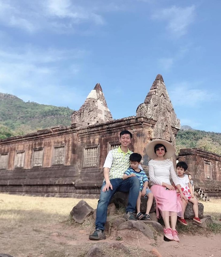Keluarga saudari Anh Phuong dalam kunjungan pertama ke Wat Phou (Foto: diberikan tokoh)