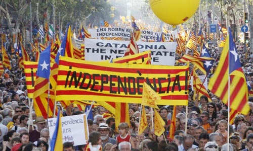 Dalam blok Euro sekarang, Spanyol merupakan satu negara yang menderita pengaruh berat akibat resesi ekonomi. Defisit anggaran keuangan negara mencapai 9% GDP dan prosentase pengangguran melampaui 30%. Selama beberapa tahun ini, Pemerintahan wilayah Katalunya tidak menerima kebijakan-kebijakan keras yang dituntut Uni Eropa dan blok Euro. Pertanyaan mengapa memaksa Katalunya ikut berbagi utang Spanyol terhadap Bank Sentral Eropa atau Dana Moneter Internasional pada saat Katalunya sebaliknya memberikan paling banyak sumbangan kepada anggaran keuangan pusat, adalah alasan yang memicu wilayah ini memisahkan diri. Selain alasan ekonomi, bahasa dan pusaka budaya sendiri juga merupakan satu tenaga pendorong yang berarti bagi Katalunya untuk “mendambakan” pemisahan diri menjadi satu negara merdeka.