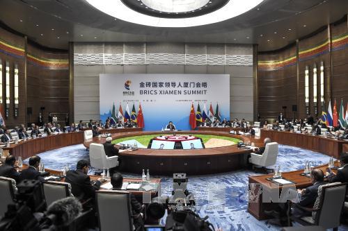 Dalam pidato pembukaan dengan martabat sebagai wakil negara tuan rumah, Presiden Tiongkok, Xi Jinping menekankan bahwa latar belakang dunia mengalami banyak perubahan yang rumit dan mendalam dewasa ini menuntut kepada semua negara anggota BRICS supaya mendorong kerjasama ekonomi secara praksis, mendorong reformasi terhadap kemampuan menyelenggarakan ekonomi dunia. Para anggota BRICS perlu membuktikan saling menghormati dan menghindari bentrokan. Tentang kerjasama intrakawasan, para pemimpin Tiongkok menegaskan bahwa angka pertukaran intrakawasan yang menduduki 5,7% di antara total modal investasi asing sebanyak 197 miliar USD di BRICS pada tahun 2016 adalah terlalu sedikit dan semua negara anggota harus bertanggung-jawab mendorong kerjasama untuk sepadan dengan potensi yang dimiliki. Tiongkok berkomitmen memberikan 500 juta Yuan (sama dengan 76,4 juta USD) kepada rencana kerjasama ekonomi dan teknologi kelompok BRICS, sekaligus menyumbangkan 4 juta USD kepada berbagai proyek yang dilakukan oleh Bank Pembangunan Baru dari BRICS (NDB). Tiongkok juga mengeluarkan ide tentang BRICS yang diperluas (BRICS plus) untuk meningkatkan jumlah anggota kelompok ini. Ide memperluas BRICS bisa menguruk ruang kosong yang ditinggalkan oleh kebijakan proteksi dagang dari Amerika Serikat, membantu BRICS bisa memainkan peraman yang lebih penting dalam dunia yang sedang berkembang.