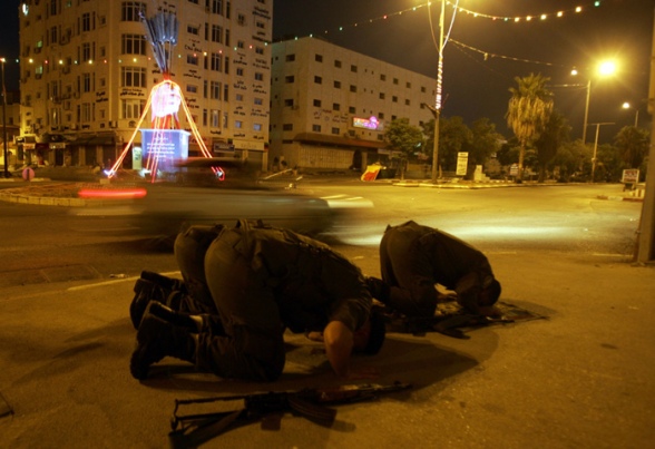 Prajurit berdoa di tengah-tengah jalan