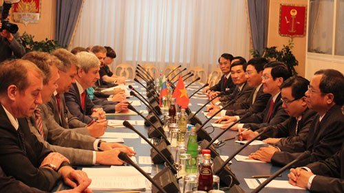 Untuk pertama kalinya, pembicaraan tingkat tinggi dari dua kepala negara berlangsung di Residensi Federasi Rusia Vladimir Putin di kota pantai Sochi. Ini merupakan satu peristiwa khusus yang belum pernah punya preseden dalam semua pertukaran kunjungan antara dua negara sebelumnya, memanifestasikan kepercayaan khusus dan perasaan akrab dari Presiden Rusia Putin untuk Presiden Vietnam Truong Tan Sang, sesuai dengan isi Dekrit tentang Kebijakan Hubungan Luar Negeri masa bakti baru yang baru-baru ini ditandatangani Presiden Rusia Vladimir Putin, menurutnya Rusia memasukkan Vietnam ke dalam daftar kelompok mitra yang penting di Asia- Pasifik, setelah Tiongkok dan sama tingkat dengan India. Hal ini juga ditegaskan Presiden Rusia Vladimir Putin setelah melakukan pembicaraan dengan Presiden Truong Tan Sang dan telah dikutip, dimuat di semua media massa Rusia selama pekan lalu. Presiden Vladimir Putin mengatakan: “Hubungan Vietnam- Rusia mempunyai akar yang mendalam, antara rakyat dua negeri kita sudah sejak lama telah mempunyai simpathi besar satu sama lain dan justru hal ini telah membantu kita mengembangkan hubungan itu pada masa kini. Sekarang ini, hubungan antara kita berkembang di semua bidang. Nilai pertukaran komoditas antara dua negara mencapai lebih dari USD 3 miliar pada tahun lalu. Kita mempunyai banyak proyek besar penting bagi dua negara".