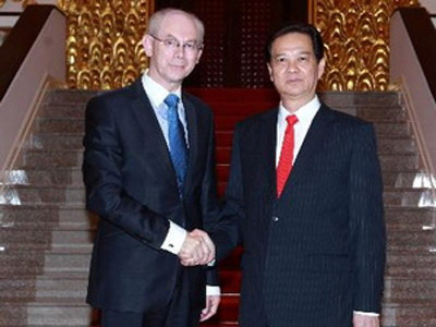 Ketua Uni Eropa Herman Van Rompuy dan Perdana Menteri Vietnam Nguyen Tan Dung.
