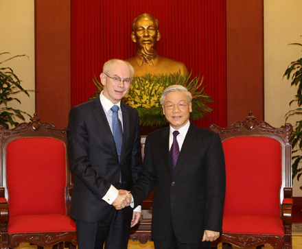 Sekjen PK VN Nguyen Phu Trong dan Ketua Uni Eropa Herman Van Rompuy.