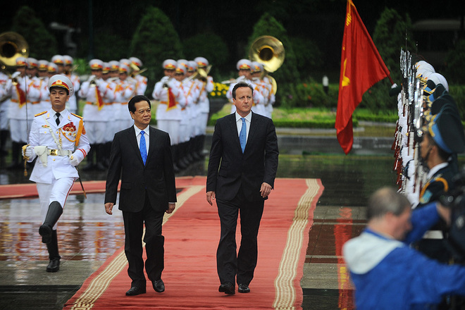 Setelah Indonesia, ketika tiba di Vietnam, PM David Cameron tidak hanya menghadiri banyak aktivitas di kota Hanoi saja, tapi juga memberikan sebagian besar waktu untuk bertemu dengan komunitas badan usaha dua negara di kota Ho Chi Minh, pusat ekonomi dan perdagangan paling besar di Vietnam. Inggeris sekarang menduduki posisi ke-3 diantara negara-negara anggota Uni Eropa yang melakukan investasi di Vietnam, dengan 204 proyek yang total modal investasinya mencapai 3,2 miliar dolar Amerika Serikat. Perihal seorang PM infungsi Inggeris untuk pertama kalinya melakukan kunjungan di Vietnam, pada latar belakang hubungan ekonomi dan perdagangan antara dua negara sedang mengalami perkembangan secara sangat positif, telah menciptakan keantusiasan baru bagi aktivitas-aktivitas promosi dagang, investasi antara komunitas badan usaha dua negara. Menganggap Vietnam sebagai satu mitra yang penting di kawasan, PM David Cameron dan timpalannya dari Vietnam, Nguyen Tan Dung berfokus membahas usaha mendorong penanda-tanganan Perjanjian Perdagangan Bebas (FTA) antara ASEAN dan Uni Eropa. Jika ditanda-tangani, maka FTA ini bisa membawa pulang kira-kira 3 miliar pounsterling (sekitar 4,5 miliar dolar Amerika Serikat) kepada Inggeris saban tahun karena usaha ekspor.