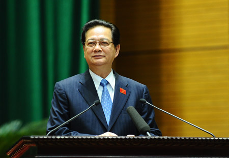 PM Vietnam Nguyen Tan Dung membacakan pidato