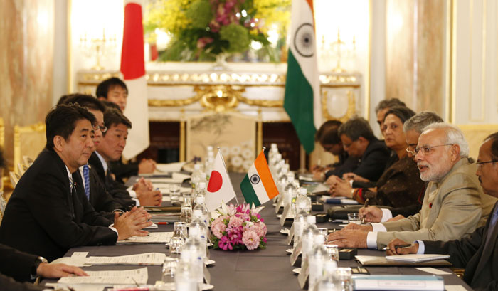 Khususnya, PM Shinzo Abe dan timpalannya dari India, Narendra Modi memutuskan “meningkatkan dan memperhebat” hubungan pertahanan, menekankan arti pentingnya menginstitusikan latihan-latihan perang bilateral di laut, serta partisipasi Jepang pada latihan-latihan perang Malabar antara India dan Amerika Serikat.