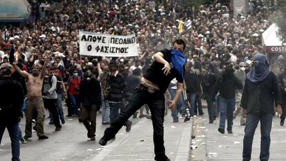 " Resesi, pengangguran dan defisit anggaran keuangan” adalah hal-hal yang sedang dialami Yunani. Bisa dikatakan, resep obat “mengetatkan ikat pinggang” dan bagaimana kegunaan uang bantuan senilai miliaran euro yang diberikan oleh institusi-institusi keuangan Eropa dan Dana Moneter Internasional kepada Athena belum tampak, tetapi berpengaruh secara ekstensif dan intensif terhadap berbagai lapisan rakyat, memojokkan masyarakat Yunani ke dalam keadaan yang tidak tenteram. Sejak ada partisipasi dari tri tunggal Komisi Eropa, Bank Sentral Eropa dan Dana Moneter Internasional, upah pekerja di negara ini telah turun rata-rata 14,3 persen, khusus pegawai negeri 9 persen dan cabang restoran dan perhotelan 33 persen. Seorang ekonom Jerman menilai bahwa jika berkurangnya upah ini lebih besar lagi akan menimbulkan akibat-akibat politik.