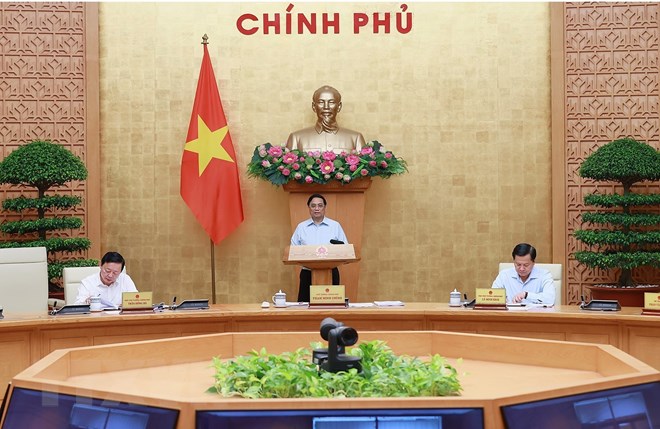 Perdana Menteri Pham Minh Chinh memimpin sidang periodik Pemerintah pada Juli 2023. (Foto: Duong Giang/VNA) |