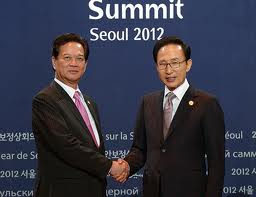 Ketika menghadiri KTT ke-2 Keamanan Nuklir selama 2 hari, PMNguyen Tan Dung telah mengadakan serentetan kontak bilateral khususnya para mitra strategis Vietnam. Setelah konferensi tersebut berakhir, PM Nguyen Tan Dung melakukan kunjungan resmi di Republik Korea. Kunjungan ini memulai aktivitas poltik penting yang mengawali “Tahun Persahabatan Vietnam-Republik Korea-2012” sehubungan dengan peringatan ultah ke-20 Penggalangan hubungan diplomatik antara dua negara. Dalam kunjungan ini, PM Nguyen Tan Dung dan Presiden Republik Korea LeeMyung Bak mengadakan pembicaraan untuk membahas banyak isi substansial, setuju memperluas kerjasama di banyak bidang diplomasi, pertahanan, keamanan, ketenaga-kerjaan, ilmu pengetahuan- teknologi, pendidikan-pelatihan dan bantuan kepada perantau masing-masing negara, khususnya setuju bersama bertindak untuk meningkatkan kerjasama ekonomi Vietnam-Republik Korea yang sepadan sebagai hubungan kemitraan dan kerjasama.