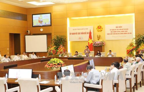Sasaran yang dituju dalam semua kebijakan sosial di Vietnam bertujuan membangun, mengembangkan dan memberikan kehidupan yang cukup sandang, cukup pangan dan berbahagia kepada manusia. Dari berbagai undang-undang dan peraturan negara masa permulaan seperti Undang-Undang tentang penjagaan kesehatan rakyat, Peraturan Negara tentang kontrak kerja dll… Komisi urusan masalah-masalah sosial dan MN Vietnam melalui berbagai periode telah membuat sistim perundang-undangan di bidang khusus untuk menderegulasikan secara menyeluruh bidang-bidang sosial. Di atas dasar itu, peraturan negara tentang ketenaga-kerjaan, lapangan kerja, kesehatan, kependudukan, kesetaraan gender, pencegahan dan pemberantasan kebobrokan sosial semakin disempurnakan, skala meliput kebijakan prioritas terhadap orang-orang yang berjasa, asuransi sosial, asuransi kesehatan, pengurangan kemiskinan, tunjangan sosial dll…semakin diperluas, tarap bantuannya selangkah demi selangkah meningkat sesuai dengan setiap periode. Sejak mulai melaksanakan pembaruan, Vietnam semakin menaruh perhatian yang bersifat strategis terhadap pemecahan atas masalah-masalah sosial. Target dan isi kebijakan sosial yang mendapat masukan dan dibangun oleh Komisi urusan masalah-masalah sosial MN Vietnam telah mengalami kemajuan-kemajuan yang kuat. Ketua MN Vietnam, Ibu Nguyen Thi Kim Ngan menegaskan: “Komisi urusan masalah-masalah sosial dari MN Vietnam telah memimpin mengklarifikasi puluhan undang-undang, banyak laporan pemaparan, laporan pengawasan dan banyak rekomendasi yang langsung bersangkutan dengan kehidupan rakyat tentang kebijakan prioritas untuk orang-orang yang berjasa, tenaga kerja, lapangan kerja, asuransi sosial, asuransi kesehatan, kebijakan kesehatan, pengurangan kemiskinan, agama, kesetaraan gender, pencegahan dan pemberantasan kebobrokan sosial telah disampaikan kepada MN dan Komite Tetap MN Vietnam. Selain itu, Komisi ini telah memimpin kelompok anggota perempuan MN ketika beraktivitas secara efektif”.