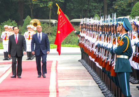 (VOVworld)- Atas undangan Perdana Menteri Vietnam, Nguyen Tan Dung, Perdana Menteri Republik Haiti, Laurent Salvador Lamothe, pada hari Senin, (17 Desember) memulai aktivitas-aktivitas dalam kerangka kunjungan resminya di Vietnam selama tiga hari dari 16 sampai 18 Desember 2012. Bersama dengan semua kontak dan pembicaraan tingkat tinggi dengan para pemimpin Vietnam, kunjungan Perdana Menteri Haiti di Vietnam kali ini merupakan kesempatan yang baik bagi dua pihak untuk memperkuat hubungan persahabatan dan kerjasama, memperluas kesempatan untuk memanfaatkan semua potensi guna memberikan sumbangan pada perkembangan Haiti dan Vietnam.