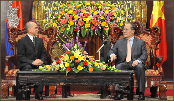 Ketua Majelis Nasional Vietnam Nguyen Sinh Hung menerima Raja Kamboja Norodom Sihamoni