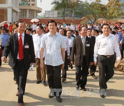 Para Pemimpin Tertinggi Vietnam mengunjungi sekolahan etnis minoritas.