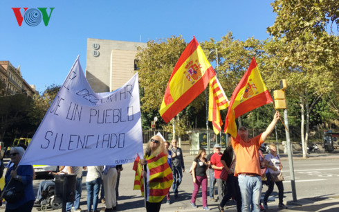 Pernyataan kemerdekaan oleh Katalonia bukanlah semangat dari mayoritas warga di kawasan ini. Dua hari setelah para legislator Katalonia melakukan pemungutan suara untuk menyatakan kawasan yang kaya dengan jumlah penduduknya 7,5 juta jiwa menjadi sebuah negara republik yang merdeka, lebih dari 1 juta orang telah ikut serta dalam pawai untuk mendukung kesatuan tanah air. Di sekitar lapangan Katalonia dan di sepanjang jalan yang megah Passeig de Gracia, penuh dengan orang dan bendera. Pers Spanyol melukiskan bahwa sejak tahun 2010, tahun di mana kesebelasan seleksi negara ini untuk pertama kalinya mencapai juara World Cup hingga sekarang, belum pernah bendera Spanyol yang muncul begitu banyak seperti itu. Dari kaum lansia sampai pemuda mengenakan bendera nasional Spanyol dan menyanyikan lirik lagu “Spanyol akan hidup untuk selama-lamanya”. Bagi orang-orang ini, pesan mereka hanya satu yaitu Katalonia adalah Spanyol, Spanyol adalah Katalonia dan petualangan yang curang tentang kemerdekaan kawasan ini harus dihentikan”. Di lautan bendera dan slogan itu, salah satu papan yang muncul paling banyak bertuliskan: 38% bukanlah Katalonia” ( jumlah pemilih yang mendukung Katalonia menjadi negara merdeka). Di Madrid, ibu kota Spanyol, ribuan warga negara Spanyol telah berkumpul di Lapangan Plaza Colon untuk memanifestasikan dukungannya terhadap kesatuan Tanah Air dan Undang-Undang Dasar Spanyol.