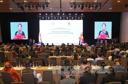 Tentang hubungan antar-parlemen dengan pelaksanaan semua target perkembangan yang berkesinambungan (SDGs), Ketua Parlemen Myanmar, Mahn Win Khaing Than menyatakan bahwa para legislator memainkan peranan penting dalam menyusun dan melaksanakan target-target perkembangan yang berkesinambungan yang meliputi masalah menjamin kebijakan perkembangan, menjamin kemajuan di segi hukum dan menyerap partipasi semua pihak dalam proses ini. Parlemen Myanmar berkomitmen melaksanakan semua program perkembangan yang berkesinambungan dan melaksanakan semua target perkembangan. Bersamaan dengan itu, Ketua MN Vietnam, Nguyen Thi Kim Ngan menegaskan bahwa MN Vietnam mencapai kebulatan pendapat tinggi dengan IPU tentang isi agenda konferensi tematik kali ini. Vietnam telah menggelarkan penyusunan rencana aksi nasional tentang pelaksanaan Program Agenda 2030 yang menjadi dasar hukum bagi Vietnam untuk melaksanakan komitmen kepada komunitas internasional, memberikan sumbangan yang bertanggung-jawab pada semua upaya bersama global tentang perkembangan yang berkesinambungan. Rencana aksi nasional Vietnam disusun di atas pandangan: Manusia adalah sentral perkembangan yang berkesinambungan. Mengembangkan secara maksimal faktor manusia dengan peranan sebagai subyek, sumber daya utama dan adalah target dari perkembangan yang berkesinambungan. Vietnam telah berfokus menyempurnakan sistim kebijakan untuk menjamin kerangka hukum yang lengkap untuk pelaksanaan rencana aksi dan semua target perkembangan yang berkesinambungan dari Vietnam, menyusun rencana aksi dari semua kementerian, instansi dan daerah, menyelipkan semua target rencana aksi nasional tentang pelaksanaan Agenda 2030 pada rencana perkembangan sosial-ekonomi tahap 2016-2020.