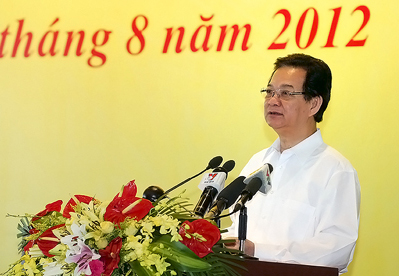 PM Nguyen Tan Dung berbicara dengan para peserta Konferensi
