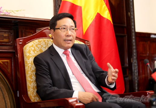 Deputi Perdana Menteri, Menteri Luar Negeri Vietnam, Pham Binh Minh menjawab wawancara wartawan VOV