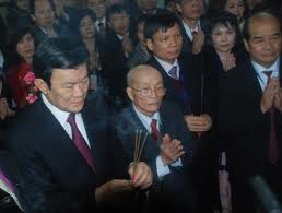 Presiden Truong Tan Sang dan para perantau membakar hio menyembah nenek moyang