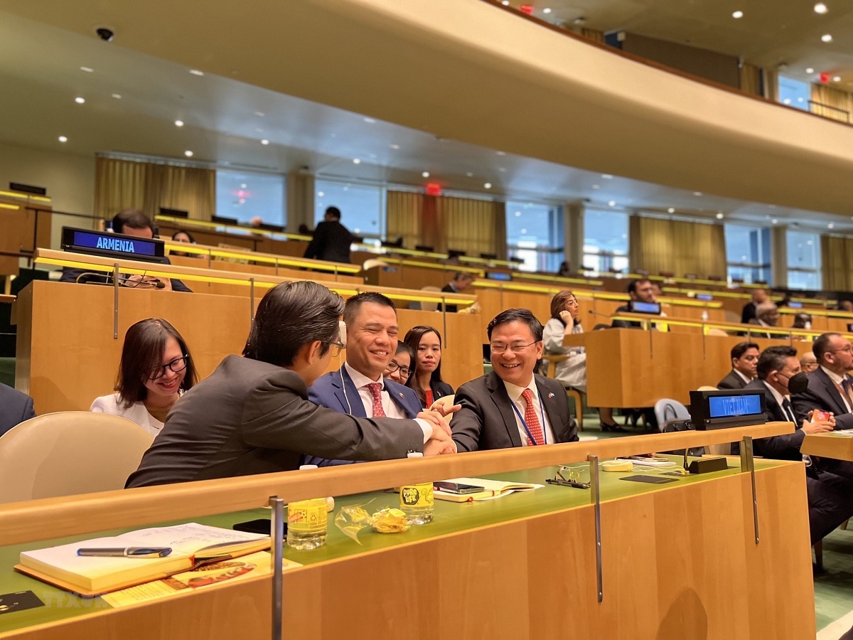 Kegembiraan delegasi Vietnam saat teripilih menjadi anggota Dewan Hak Asasi Manusia Perserikatan Bangsa-Bangsa masa bakti 2023-2025 (Foto: vna) |