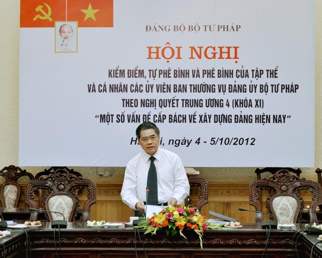 Bapak Ngo Van Du, anggota Polit Biro KS PKV, Kepala Komite Pemeriksaan KS PKV memberitahukan: “Oto-kritik dan kritik kali ini dilakukan dalam waktu 16 hari, jangka waktu yang paling panjang selama ini dan dibagi menjadi banyak langkah. Pertama ialah melakukan oto-kritik dan kritik terhadap kolektif, berikutnya ialah oto-kritik dan kritik terhadap empat pemimpin teras yang terdiri dari Sekretaris Jenderal, Presiden Negara, Perdana Menteri Pemerintah dan Ketua Majelis Nasional. Selanjutnya ialah oto-kritik dan kritik terhadap 14 anggota Polit Biro dan sisanya Sekretariat. Setelah gelombang oto-kritik dan kritik tersebut, Polit Biro KS PKV dan Sekretariat KS PKV terus menjalankan aktivitas-aktivitas berikutnya dalam gelombang oto-kritik dan kritik sampai dengan September 2012 dan hanya berakhir setelah Sidang Pleno ke-6 KS PKV mengesahkan laporan oto-kritik dan kritik dari Polit Biro dan Sekretariat KS PKV”.