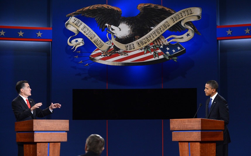 Sebaliknya, capres Mitt Romney juga memanfaatkan semua kesempatan untuk mengorek kelemahan-kelemahan capres Barack Obama di bidang hubungan dalam negeri serta pos-pos utang publik dan politik pengembangan energi. Mitt Romney mencela politik ekonomi tidak efektif yang dijalankan pemerintah pimpinan Barack Obama telah menjerumuskan 20 juta orang ke dalam situasi pengganguran atau kekurangan lapangan kerja, bersamaan itu berkomitmen akan menciptakan 12 juta lapangan kerja dalam waktu empat tahun mendatang, jika dia terpilih menjadi Presiden. Mantan Gubernur Mitt Romney ini berpendapat bahwa Gedung Putih harus bertanggung jawab atas situasi ekonomi yang macet seperti sekarang ini dan mencela cara manajemen Barack Obama terhadap perekonomian, sehingga defisit anggaran keuangan federal meningkat drastis. Sementara itu, Barack Obama menuduh lawannya yang telah memutar-balikkan politik-politik pemerintah, bersamaan itu menegaskan bahwa semua politiknya telah dijalankan secara berhasil guna. Barack Obama berpendapat bahwa wakil dari Partai Republik adalah seorang yang tidak konsisten ketika mengubah pendiriannya tentang masalah energi, yang dulu pernah menolak eksploitasi batu bara, tetapi sekarang sebaliknya berubah mendukung hal ini.