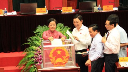 Ngo Thi Doan Thanh, Ketua Dewan Rakyat kota Hanoi dan Nguyen The Thao,Ketua Komite Rakyat Kota Hanoi ikut memberikan suara kepercayaan