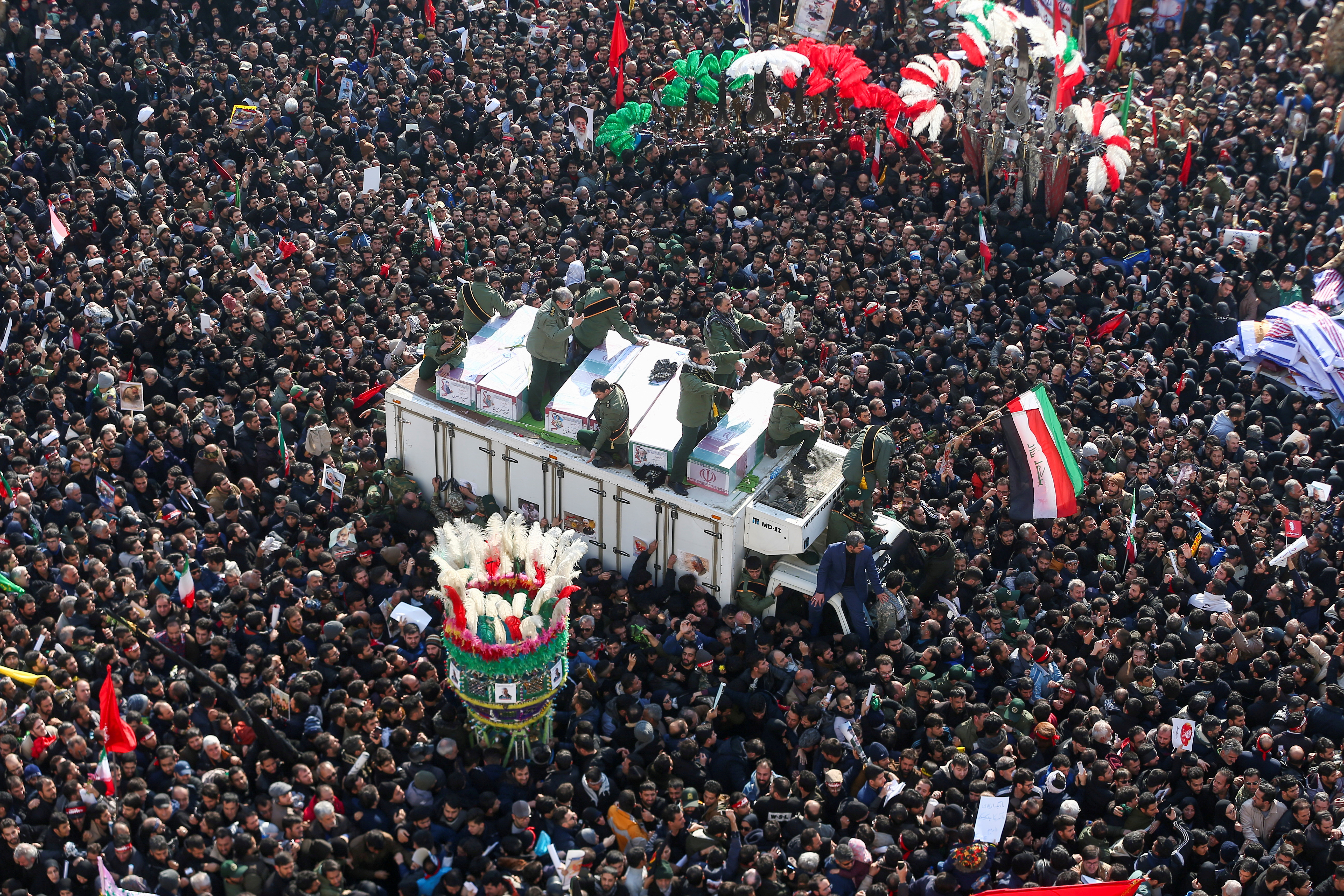 Warga Iran ikut serta dalam upacara pemahaman Brigradir Jenderal Qassem Soleimani (Foto: Reuters) |