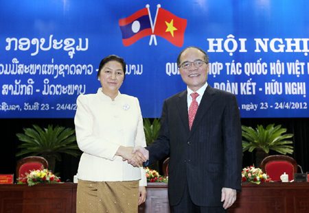 Ketua MNVN Nguyen Sinh Hung dan Ketua Parlemen Laos, ibu Pany Yathotou .