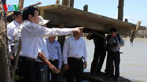 (VOVworld) – Presiden Vietnam Truong Tan Sang dan rombongan kerja pemerintahan pusat yang terdiri dari para pemimpin berbagai kementerian dan instansi yang bersangkutan baru saja melakukan inspeksi terhadap tanggul laut di beberapa provinsi di daerah Dataran Rendah Sungai Mekong dan melimpahkan tugas mengembangkan tanggul laut tersebut kepada semua kementerian, instansi yang bersangkutan dan pemerintahan daerah. Pengembangan tanggul laut tersebut merupakan pekerjaan selanjutnya dalam program pembangunan tanggul laut untuk menghadapi perubahan iklim, menjamin ketahanan pangan dan mengembangkan ekonomi kelautan di semua provinsi dan kota pantai Vietnam.