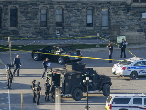 Keamanan diperketat di luar Gedung Kanada setelah pemberondongan