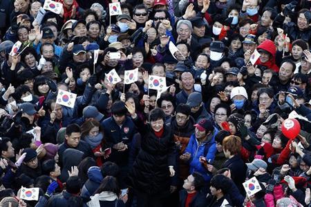 Presiden wanita pertama dari Republik Korea di tengah-tengah susana kegembiraan dari para pendukungnya