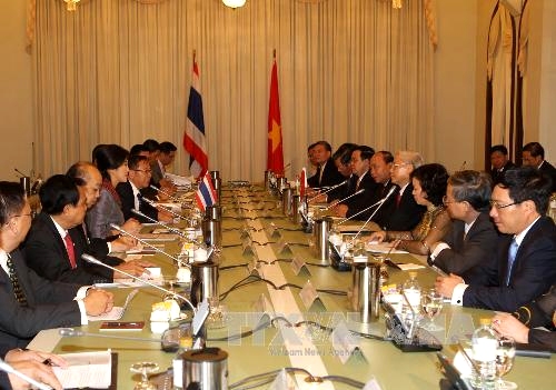 Pada latar belakang begitu, kunjungan resmi dari Sekjen KS PKV, Nguyen Phu Trong di Thailand kali ini bertujuan untuk terus menggelarkan secara sinkron dan komprehensif aktivitas hubungan luar negeri, berinisiatif dan aktif melakukan integrasi internasional, menegaskan politik menghargai dan menyediakan prioritas tinggi dalam memperkuat hubungan dengan negara - negara tetangga di kawasan; menegaskan Vietnam sebagai anggota yang bertanggung jawab dan aktif, bersama-sama dengan Thailand dan negara - negara ASEAN yang lain berupaya membangun Komunitas ASEAN yang bersatu, terkoneksi dan kuat demi satu Asia Tenggara yang damai, bersahabat, bekerjasama dan berkembang. Sekjen Nguyen Phu Trong melakukan pembicaraan dan pertemuan dengan para pemimpin Thailand, berbahas tentang langkah - langkah mendorong hubungan bilateral dan berbagi pandangan tentang masalah-masalah regional dan internasional. Menurut agenda, dua pihak akan mengajukan Pernyataan Bersama tentang dengan resmi menggalang hubungan kemitraan strategis Vietnam - Thailand. Sekjen Nguyen Phu Trong juga mengadakan pertemuan - pertemuan dengan para pemimpin dari beberapa partai politik di Thailand, turut memperluas dan memperkokoh hubungan antara Partai Komunis Vietnam dengan partai-partai ini, menciptakan dasar politik yang mantap bagi hubungan antara dua negara./.