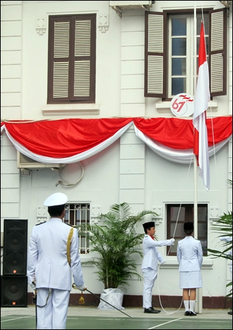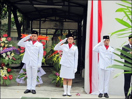 (VOVworld)- Pada Jumat pagi 17 Agustus di Kedutaan Besar Indonesia di Hanoi telah diadakan acara mengerek bendera sehubungan dengan peringatan ultah ke-67 Hari Kemerdekaan Republik Indonesia (17 Agustus 1945). Yang hadir pada acara tersebut ada Pemimpin, personel , masyarakat Indonesia yang sedang tinggal dan bekerja di Vietnam beserta banyak wartawan Vietnam.