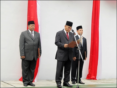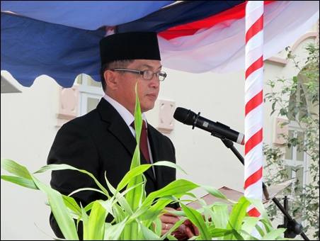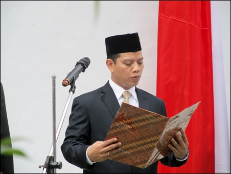 | Bapak Samsudin - Konselor KBRI di Hanoi membacakan teks Panca Sila |