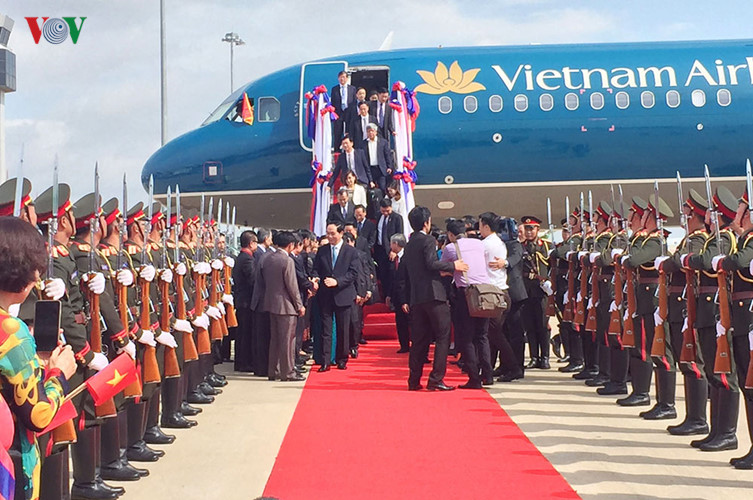(VOVworld) – Presiden Negara Vietnam, Tran Dai Quang, Selasa (15/11), memulai kunjungan resmi di Republik Kuba dari 15-17/11 atas undangan Ketua Dewan Negara dan Ketua Dewan Menteri Kuba, Raul Castro. Kunjungan ini bermaksud memperdalam lebih lanjut lagi hubungan solidaritas istimewa, kerjasama komprehensif dan saling kepercayaan menyeluruh antara Partai Komunis, Negara dan Rakyat dua negeri Vietnam dan Kuba.