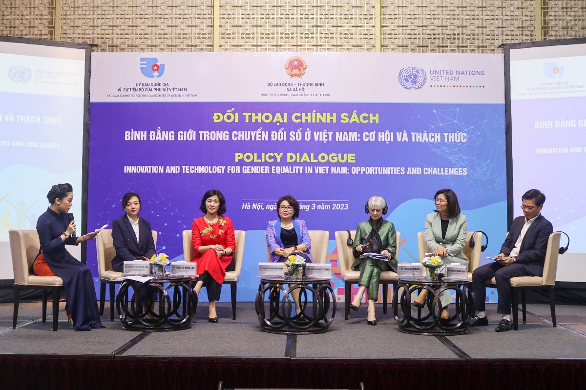 Dialog kebijakan dengan tema "Kesetaraan Gender dalam digitaliasi di Vietnam: Peluang dan tantangan" pada 3/3/2023. (Foto: toquoc.vn) |
