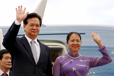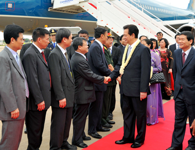 PM Vietnam Nguyen Tan Dung dan Istri datang ke Phnom Penh