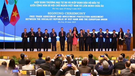 (VOVWORLD) - Perjanjian Perdagangan Bebas Uni Eropa-Vietnam (EVFTA) dan Perjanjian Proteksi Investasi Uni Eropa-Vietnam (EVIPA) baru saja resmi ditandatangani pada Minggu (30 Juni), di Ibukota Ha Noi, Vietnam setelah bertahun-tahun melakukan perundingan. Event ini menandai perkembangan yang penting dalam hubungan kemitraan dan kerjasama komprehensif Vietnam-Uni Eropa, menjadi hubungan kemitraan dan kerjasama yang setara dan saling menguntungkan.