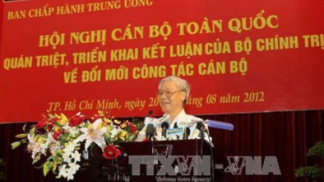 (VOVworld)- Pada Konferensi Kader Nasional tentang mencengkam dan menggelarkan kesimpulan nomor 24 Polit Biro Komite Sentral Partai Komunis Vietnam mengenai masalah memperkuat pekerjaan perancangan dan mutasi kader dan pengelola sampai tahun 2020 serta tahun-tahun selanjutnya yang berlangsung dari 20 sampai 21 Agustus di kota Ho Chi Minh, Sekretaris Jenderal (Sekjen) Komite Sentral Partai Komunis Vietnam, Nguyen Phu Trong menegaskan perlunya memperbarui pekerjaan perancangan dan penilaian kader menjadi masalah kunci dalam pekerjaan pembangunan Partai Komunis Vietnam.