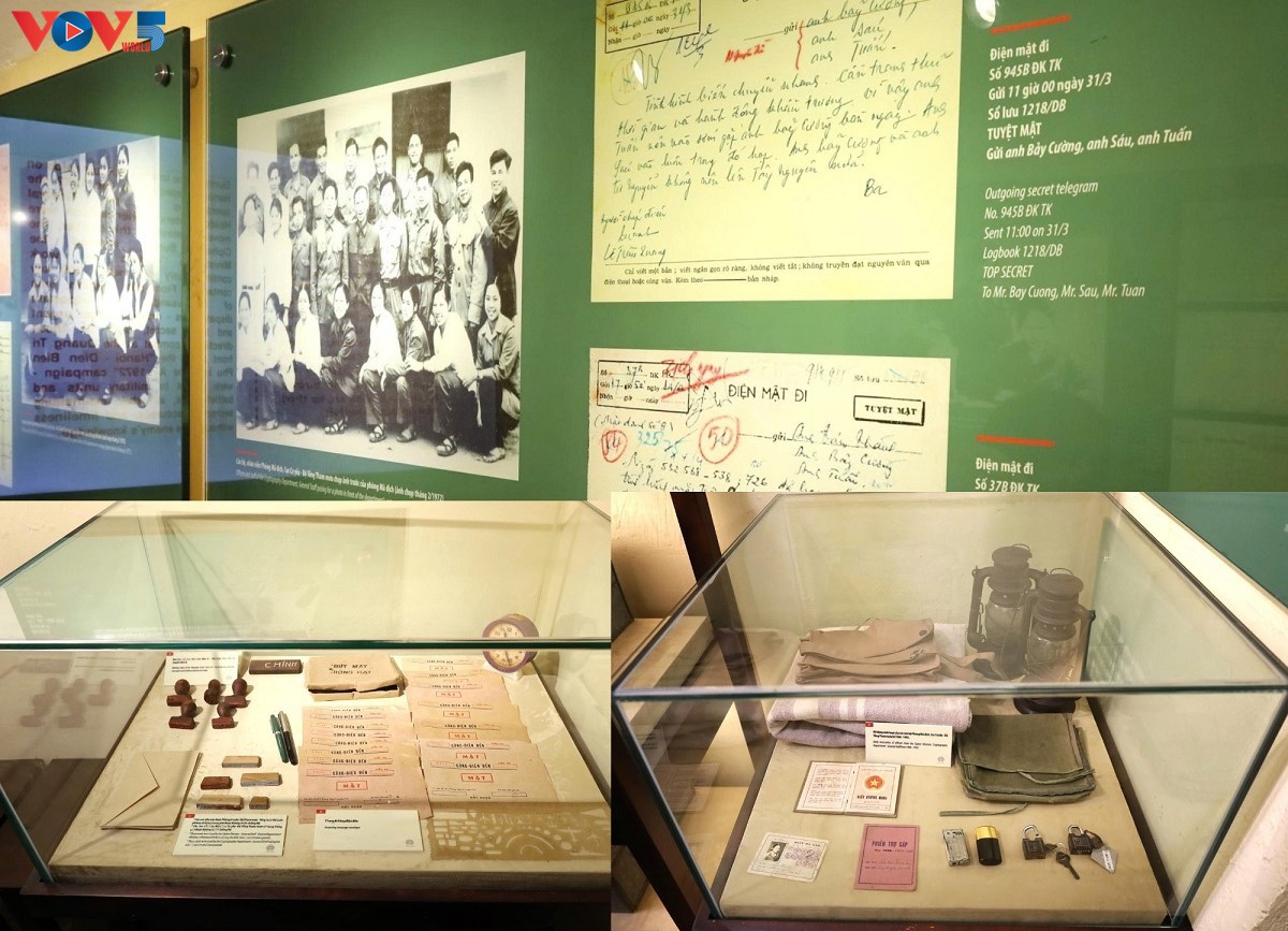 Tempat memamerkan benda-benda bersejarah yang berharga seperti: stempel segel C58, stempel "sangat mendesak", stempel "mendesak", pena tinta, tas dokumen...(Foto: Kim Lieu/VOV5) |