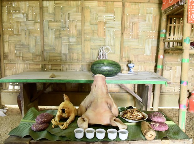 Talam sesajian untuk dipersembahkan kepada leluhur dari warga etnis minoritas Dao pada Hari Raya Qingming (Foto: Diem Quynh)