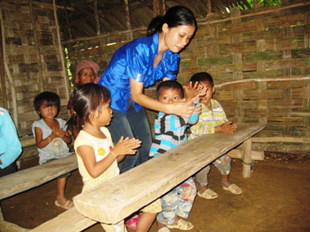 Kehidupan rakyat etnis minoritas Mong di kecamatan Hua Nhan masih mengalami banyak kesulitan, oleh karena itu, mereka memberikan sebagian besar waktu mereka untuk mencari nafkah sedangkan anak-anak lahir dan dibesarkan bagaikan pohon liar di hutan. Ketika sudah bisa bekerja, anak-anak ini akan ikut orang tuanya ke huma, tidak memperdulikan soal perlunya belajar kebudayaan. Giang A Lenh, Sekretaris Komite Partai Kecamatan Hua Nhan, memberitahukan: “Dulu orang tua rakyat etnis minoritas Mong tidak bisa menyekolahkan anak perempuan, tapi sekarang semua anak, baik laki-laki atau perempuan yang bisa pergi bersekolah”