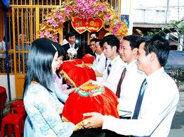 (VOVworld) - Dalam kehidupan spiritualorang Vietnam, upacara pernikahan merupakan satu pekerjaan yang maha penting dalam kehidupan setiap orang. Protokol pernikahan yang kental dengan identitas nasional diselenggarakan secara berbeda-beda di masing masing daerah, merupakan adat-istiadat dan kebiasaan yang paling khas dari bangsa. Pada masa kini, meskipun ada banyak perubahan menurut laju perkembangan modern dalam masyarakat, tetapi semua protokol tradisional masih tetap memainkan peranan dominan dalam upacara pernikahan orang Kinh ( atau orang Viet).