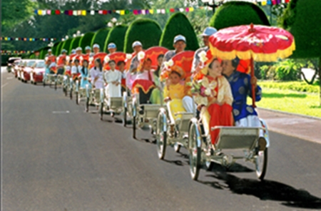Upacara menjemput pengantin perempuan di Vietnam Selatan.