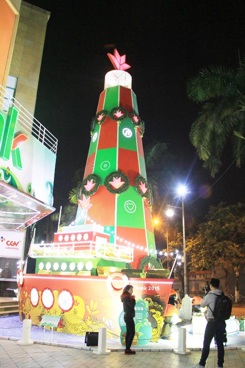 | A tree shaped like a lighthouse creates a canopy of light at the Vincom Centre on Ba Trieu.street |