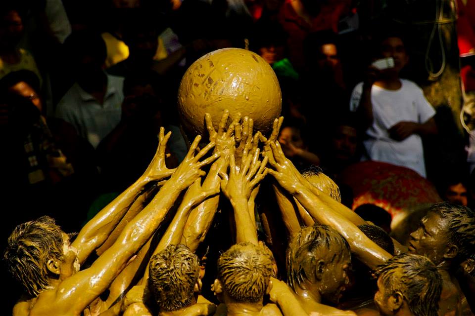 ![]() Selected unmarried men shove each other for a wood ball at an annual festival to honor local gods who defeated lagoon monsters in the 6th century, and to pray for bumper crops. |