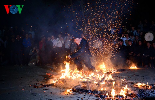 (VOV) - Fire dancing is a typical spiritual culture of Dao ethnic minority people to pray for happiness and bumper crop. Fire dancing festival takes place at night which increases the mysterious and astonishing nuances of the dance on the red hot charcoals.